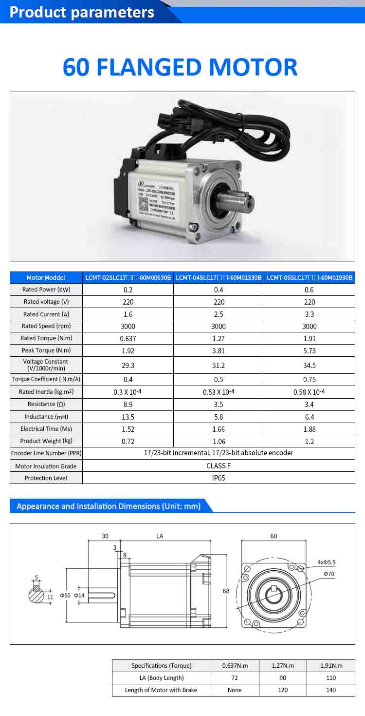 | مدل موتور | LCMT-02SLC17-60M00630B | LCMT-04SLC17-60M01330B | LCMT-06SLC17-60M01930B |