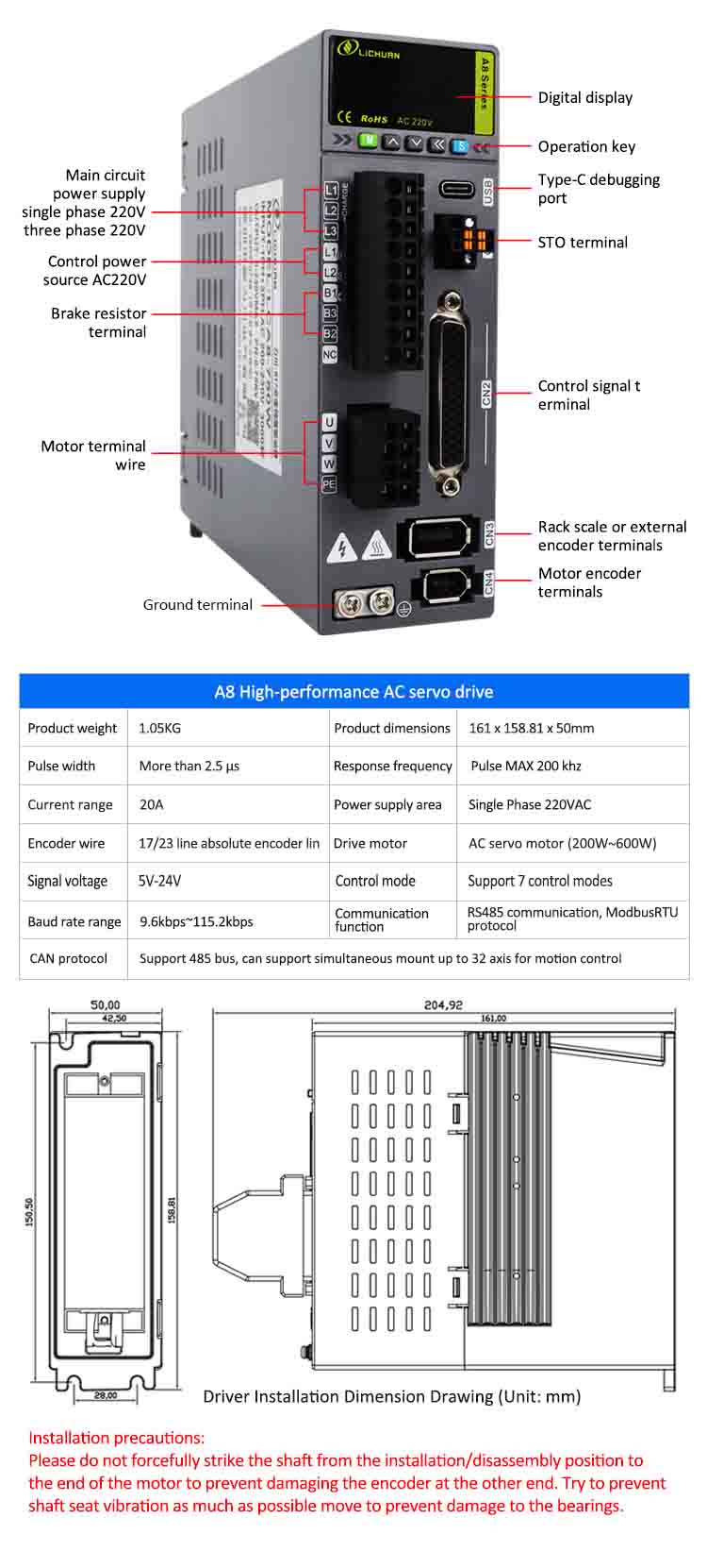 هرکیت درایور سروموتور STO ABZ AC Lichuan A8 با دقت بالاتحت: