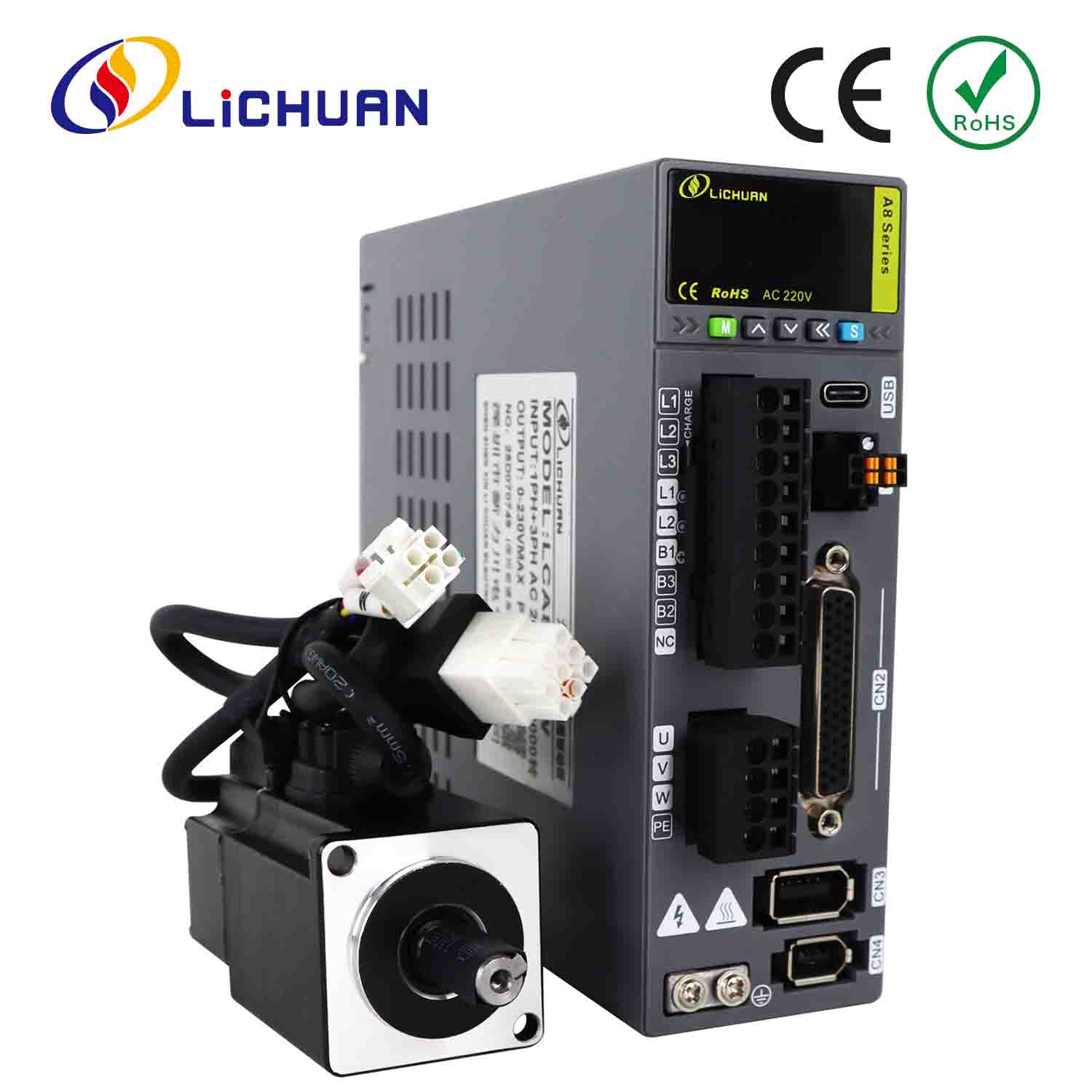 Lichuan AC Servo Motor Drivers Kit A8 High Accuracy STO ABZ 750W 0.75KW 2.39N.m 220V 4.5A 2500/3000RPM IP65