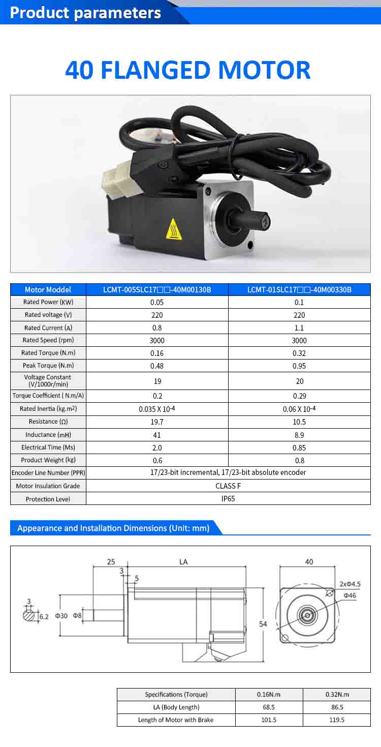Lichuan AC Servo Motor Drivers Kit A8 با دقت بالا STO ABZ 100W 0.32N.m 220V 1.1A 3000RPM IP65