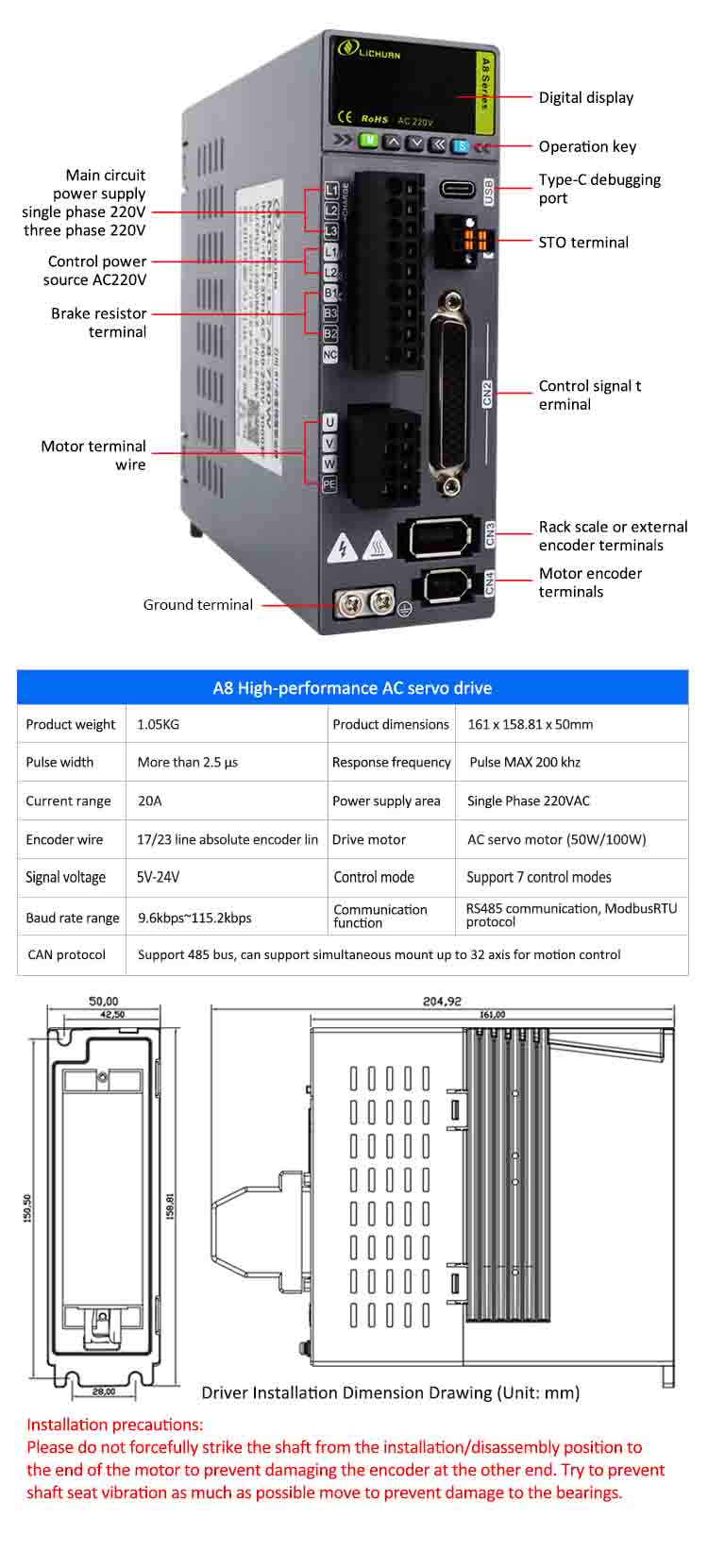 این باعث می شودکیت درایور سروموتور STO ABZ AC Lichuan A8 با دقت بالامناسب برای سیستم های کنترل حرکت خطی و چرخشی دقیق که نیاز به پاسخ سریع، لرزش کم و موقعیت یابی دقیق دارند.