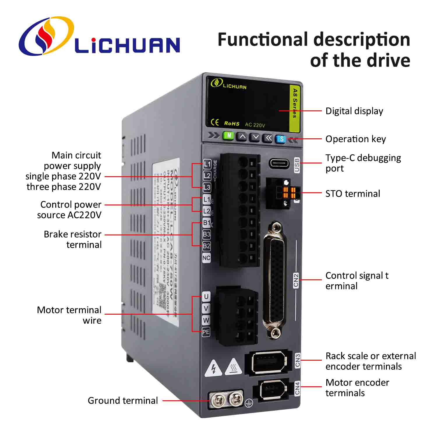 راکیت درایور سروموتور STO ABZ AC Lichuan A8 با دقت بالاطراحی شده است برایکنترل حرکت دقیق، پایدار و ایمندر ماشین آلات صنعتی کوچک تا متوسط.