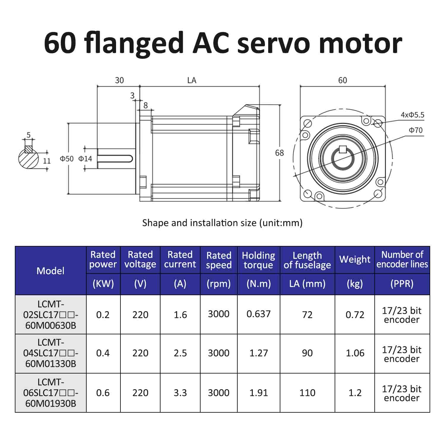| مدل موتور | LCMT-02SLC17-60M00630B | LCMT-04SLC17-60M01330B | LCMT-06SLC17-60M01930B |