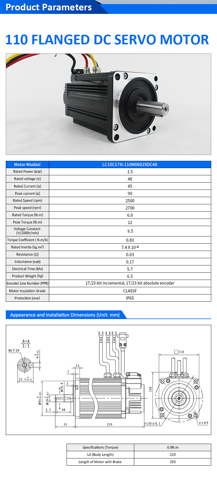 کیت درایور موتور سروو موتور DC ولتاژ پایین پالس/RS485/CANopen/EtherCAT 60 FLANGED 400W